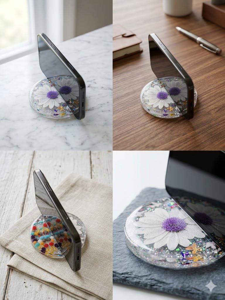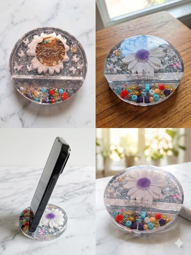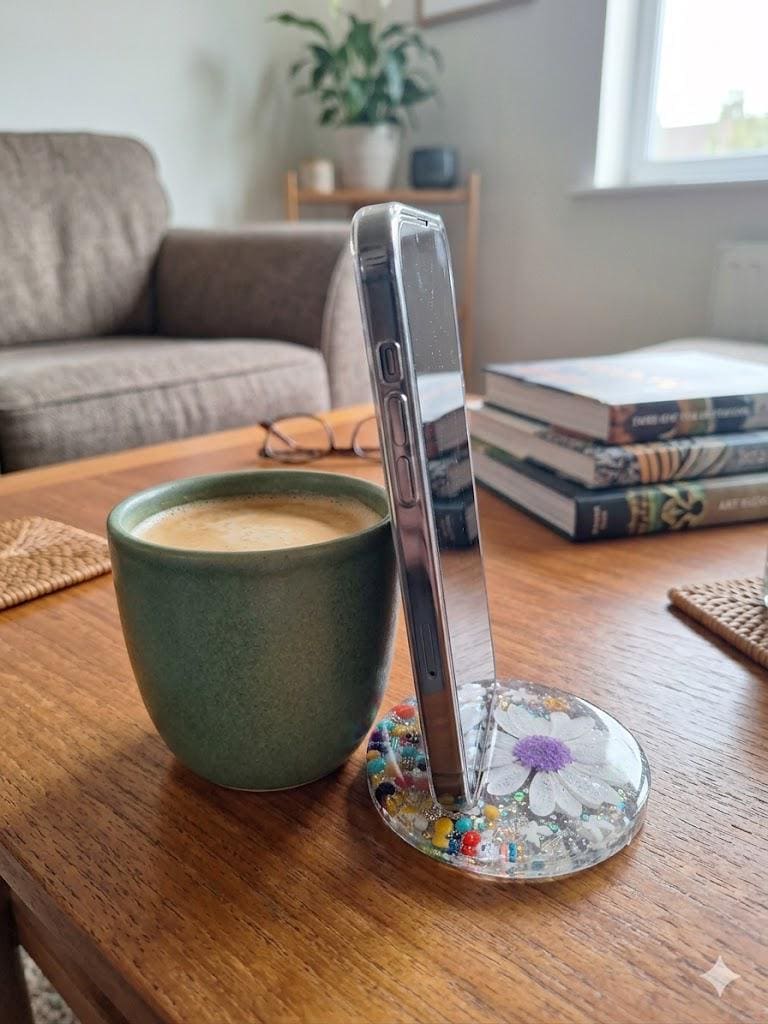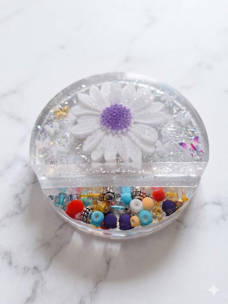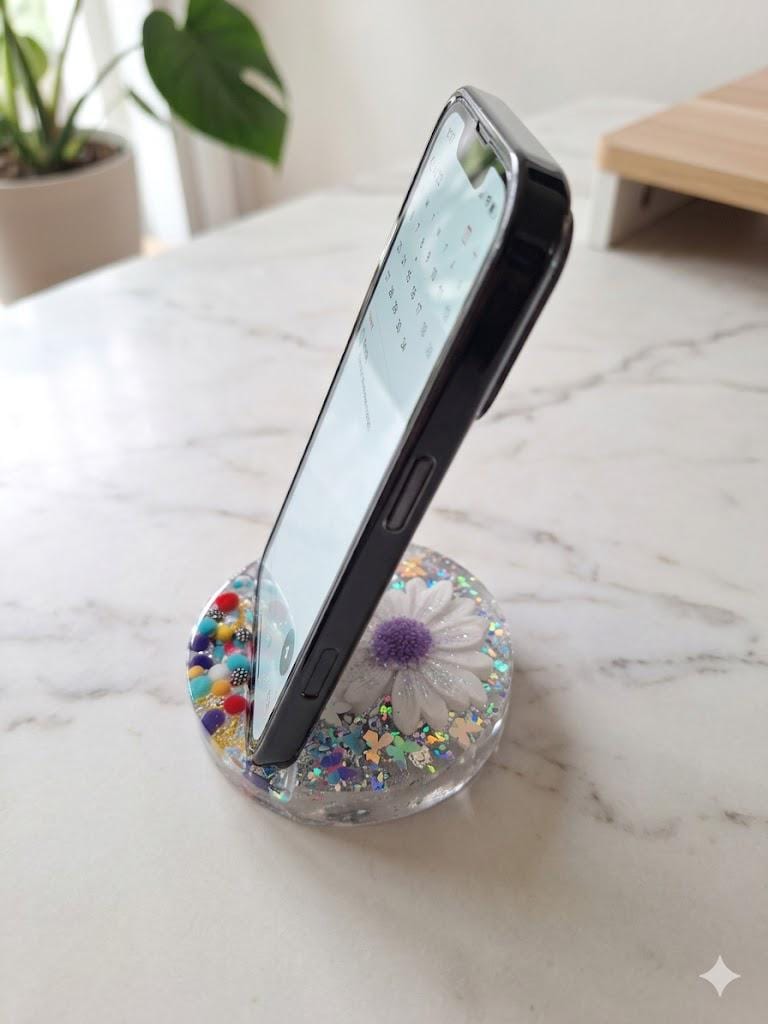 Resin Daisy Phone Stand | Floral Desktop Accessory with Glitter Beads Y2K Holder